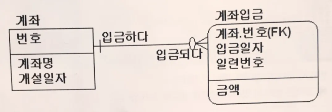 - 여기서 계좌 엔터티는 약한 개체가 된다.