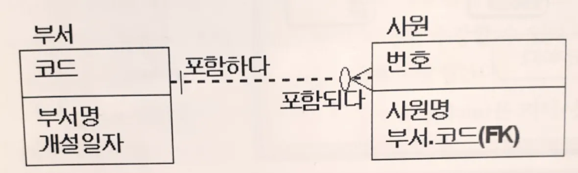 - 하나의 엔터티에 관계되는 엔터티의 관계가 하나이거나 없을 수도 있다.