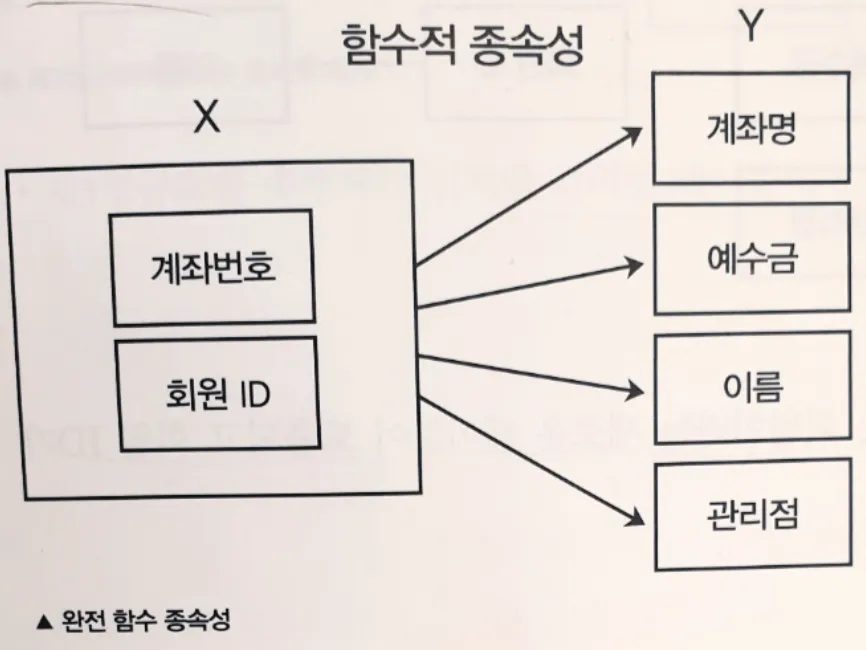 - 함수적 종속성이란 X → Y 이면 Y는 X에 함수적으로 종속한다고 말한다.