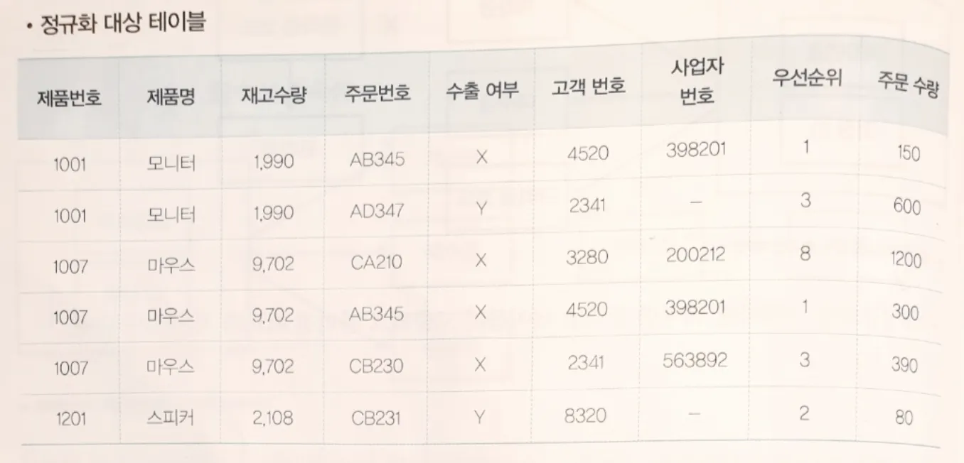 - 기본키가 제품번호+주문번호이므로 제2정규화 대상이다.