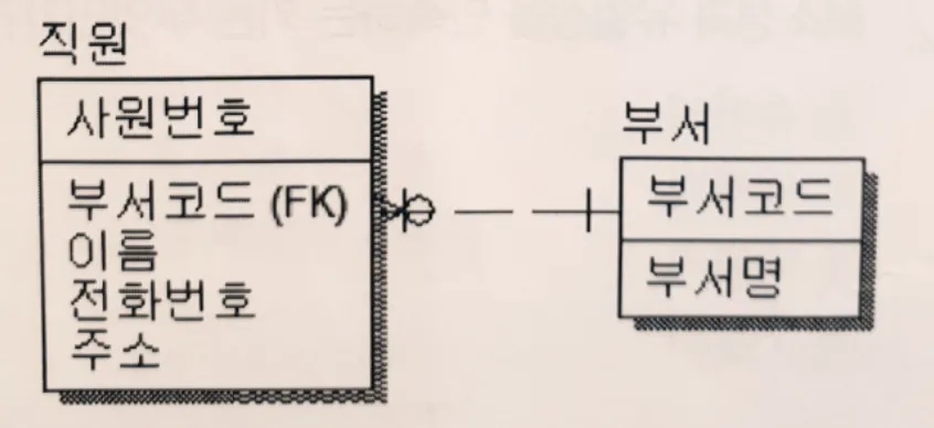 - 만약 위의 테이블에서 새로운 직우너이 추가되는 경우 부서 정보가 없으면 부서코드를 임의의 값으로 넣어야 한다.