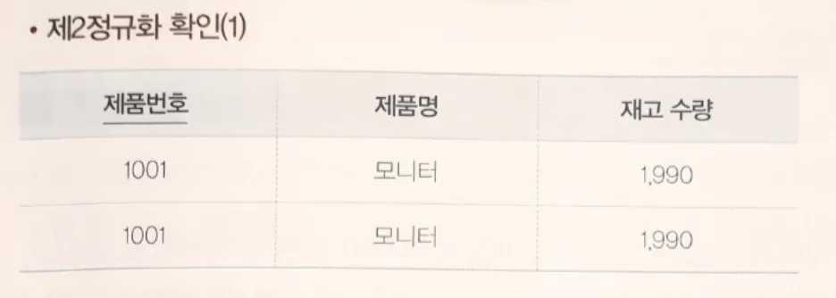 - 위의 경우를 보면, 1001, 모니터가 중복되는 것을 확인할 수 있다.