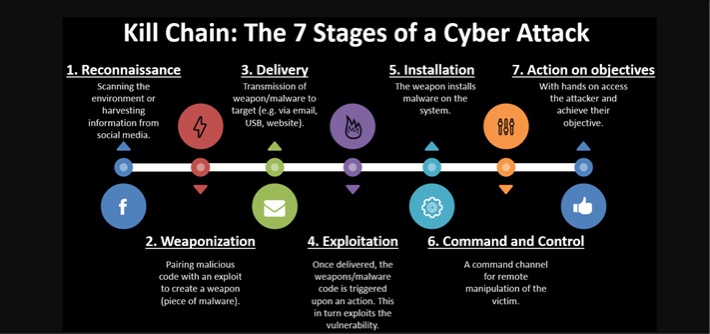 사이버 킬 체인은 다음과 같은 7단계로 구성됩니다.
